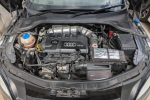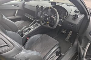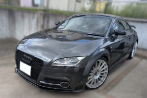 走行8.1万㎞のH26年式アウディTT(8JCDA)の改造車です。エンジン関係は置換タイプのエアクリーナーに交換しデジタルスピードのステージ1データをインストールしパワーアップしてあります。エンジンのほかにもKW車高調、エンドレスキャリパー、OZホイール、社外テールランプ、RSグリルなどを組みチューニング&ドレスアップされています。シンプルに仕上げたエクステリアで街乗りから高速走行まで快適にこなせる車のため、高価買取できました。