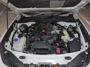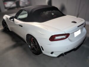 H29年式、走行6.9万㎞のアバルト124スパイダーのマニュアル車です。エンジンはレコードモンツァのマフラーに交換し、足回りはクスコの車高調、ボルクTE37ホイールが組んであります。ボディに少しキズがあり、ボンネットをラバースプレーで塗装してありましたが、まとまりのあるライトチューン車の高価買取できました。