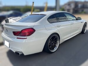 H24年式のサンルーフ付き、右ハンドルのBMW640iグランクーペで走行9.1万㎞のカスタムカーになります。カスタム内容は社外マフラー、KWのVER.3車高調、ハーマンのエアロ、SSRの20インチホイールなどになります。人気の社外ブランドパーツをバランスよく使いシンプルながら存在感のあるスタイルに仕上げてあるため、カスタムした価値を精一杯プラスし買取しました。